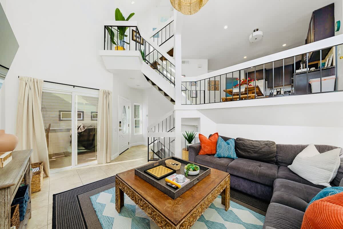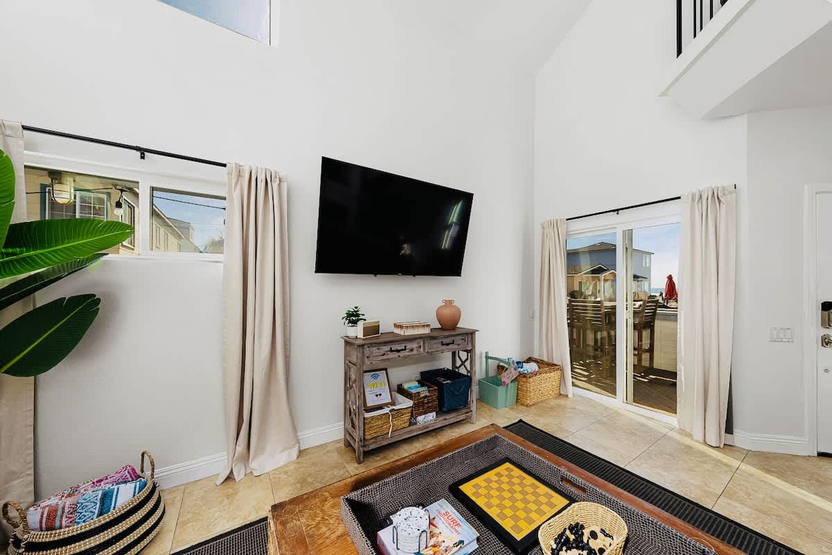 The living room features a large comfortable couch, large enough for your entire group. There is a large fully equipped kitchen, a large patio with ocean views. Compare our location to other homes you are considering -- our address is 714 Whiting Court. We are literally 20 steps from the ocean-side beach.
