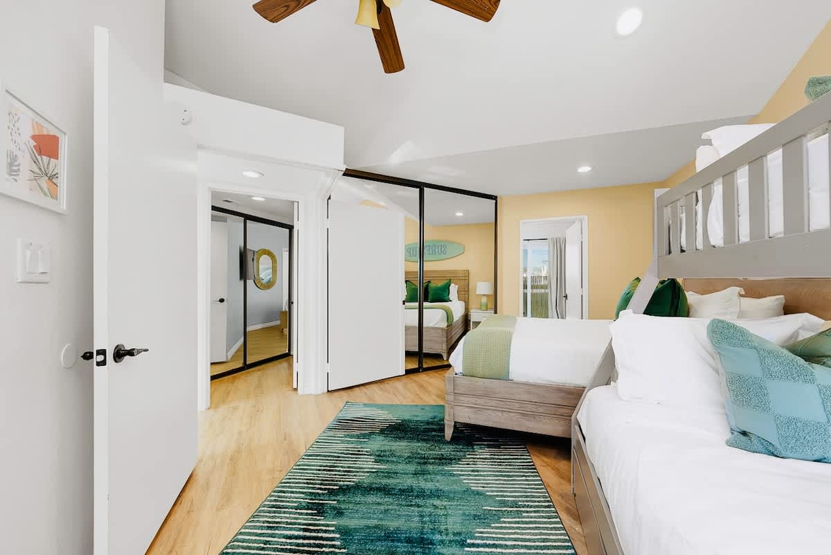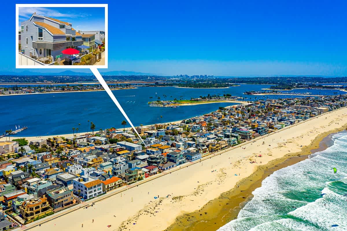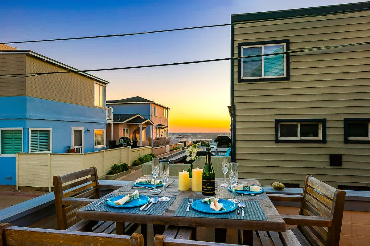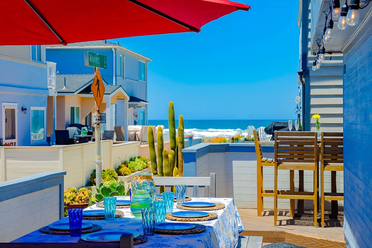 The large 1,200 sf 3 bedroom/2 bath single-family home, sleeps 10. it is ideal for two families or one large family. Two ocean view decks/patio including a huge bottom floor deck (great for meals and watching the sunset), and all the toys -- 3 beach cruiser, boogie boards, beach chairs, etc. Perfectly located just off the boardwalk in north Mission Beach, walk to tons of great restaurants, shopping, entertainment, and full grocery store.