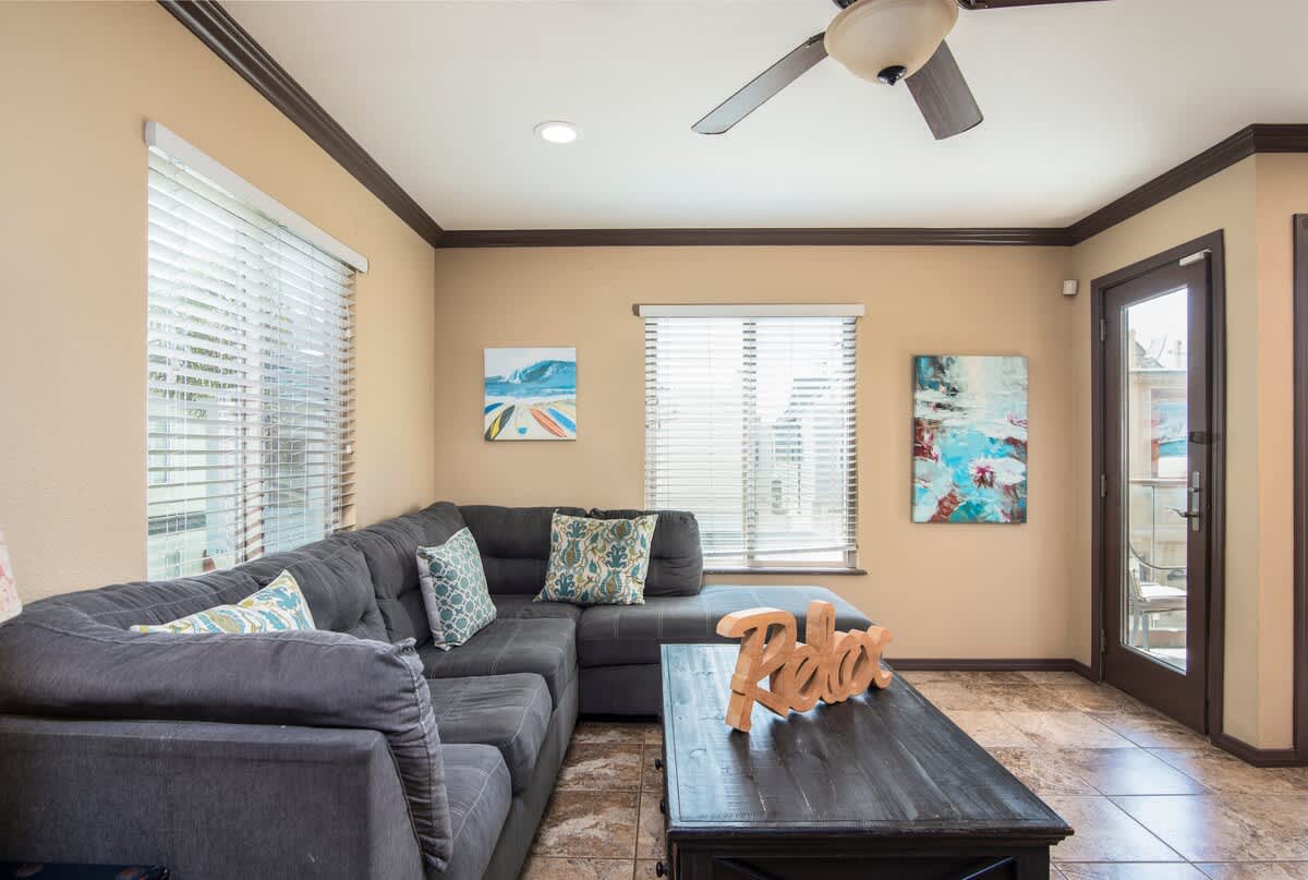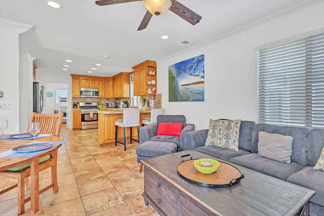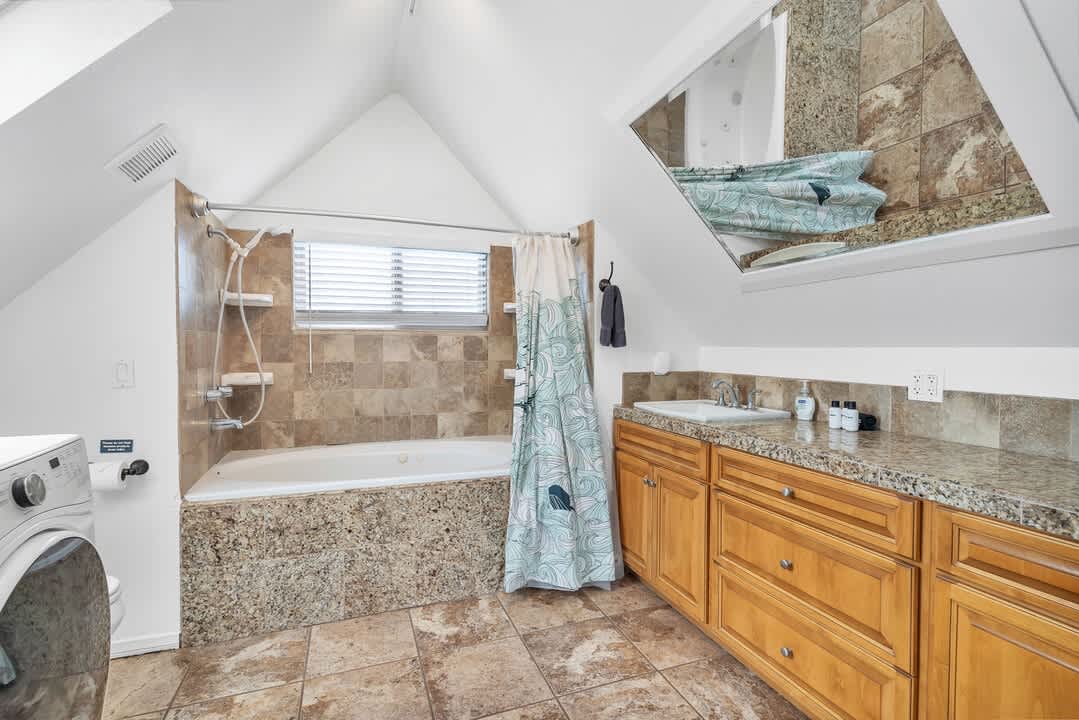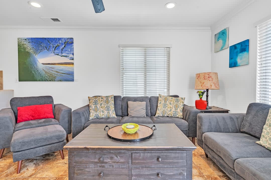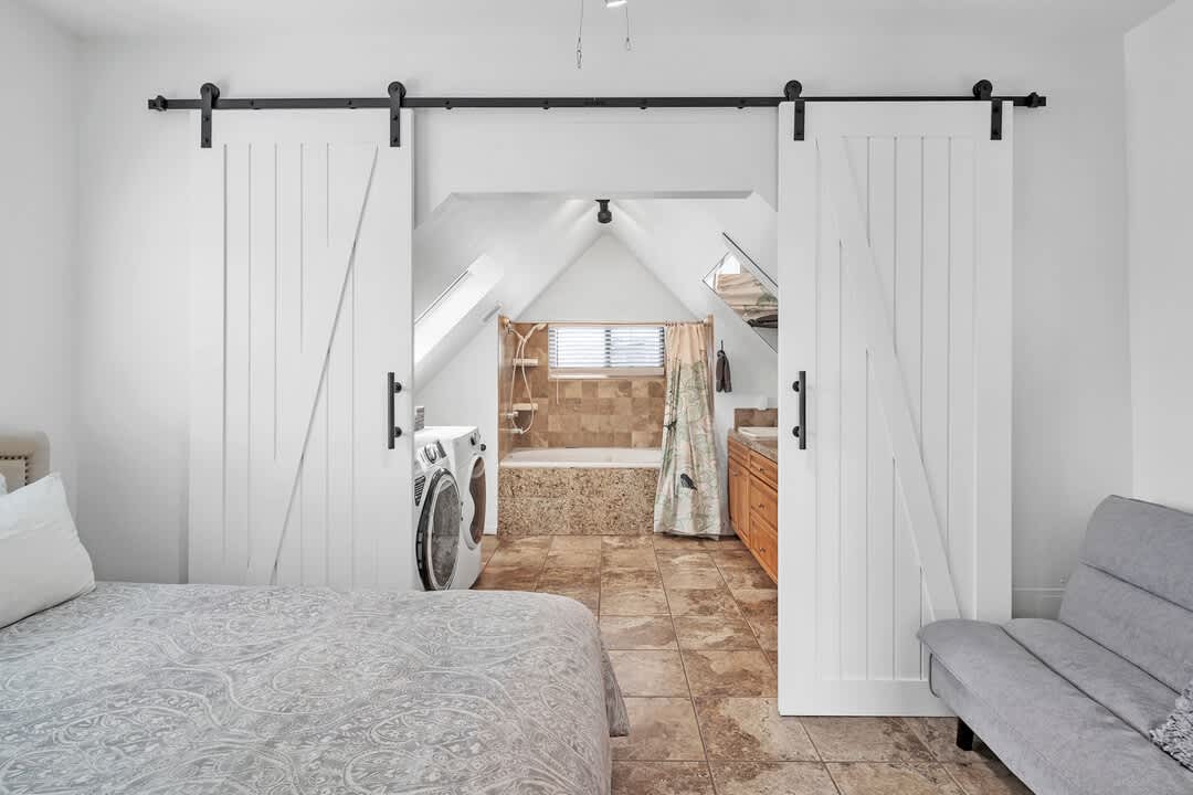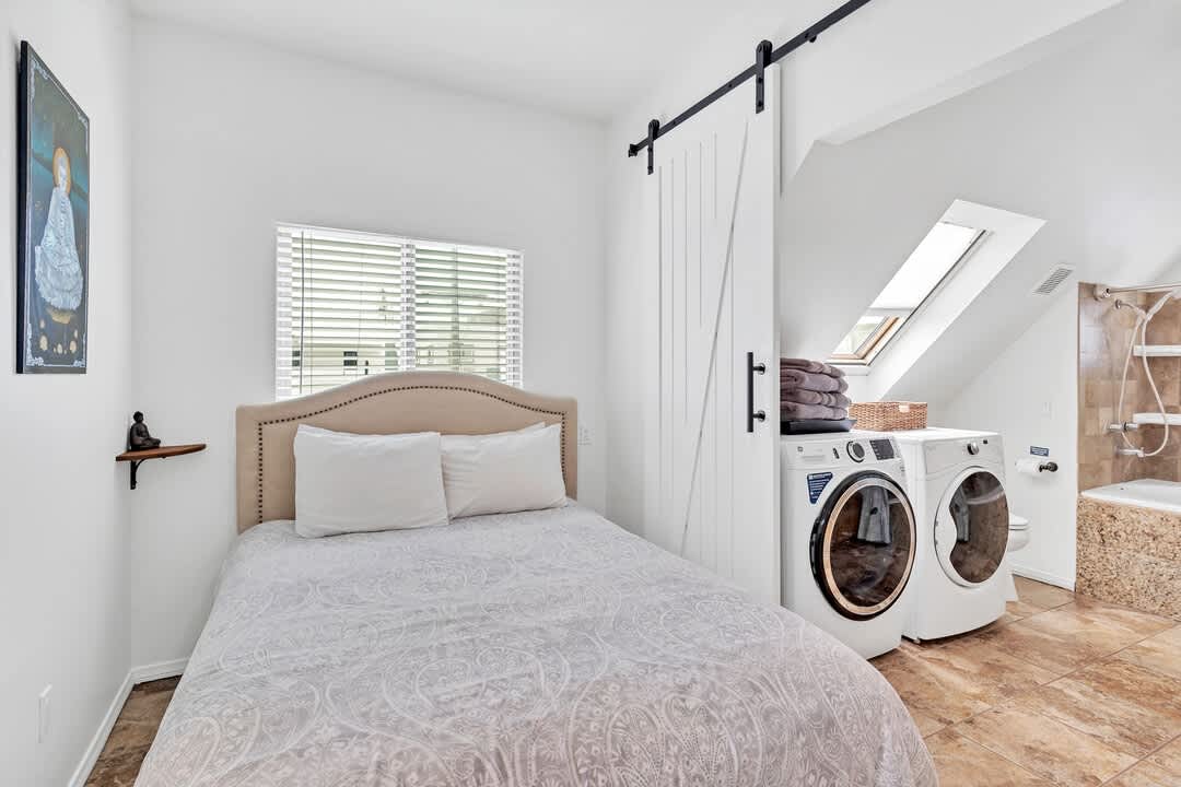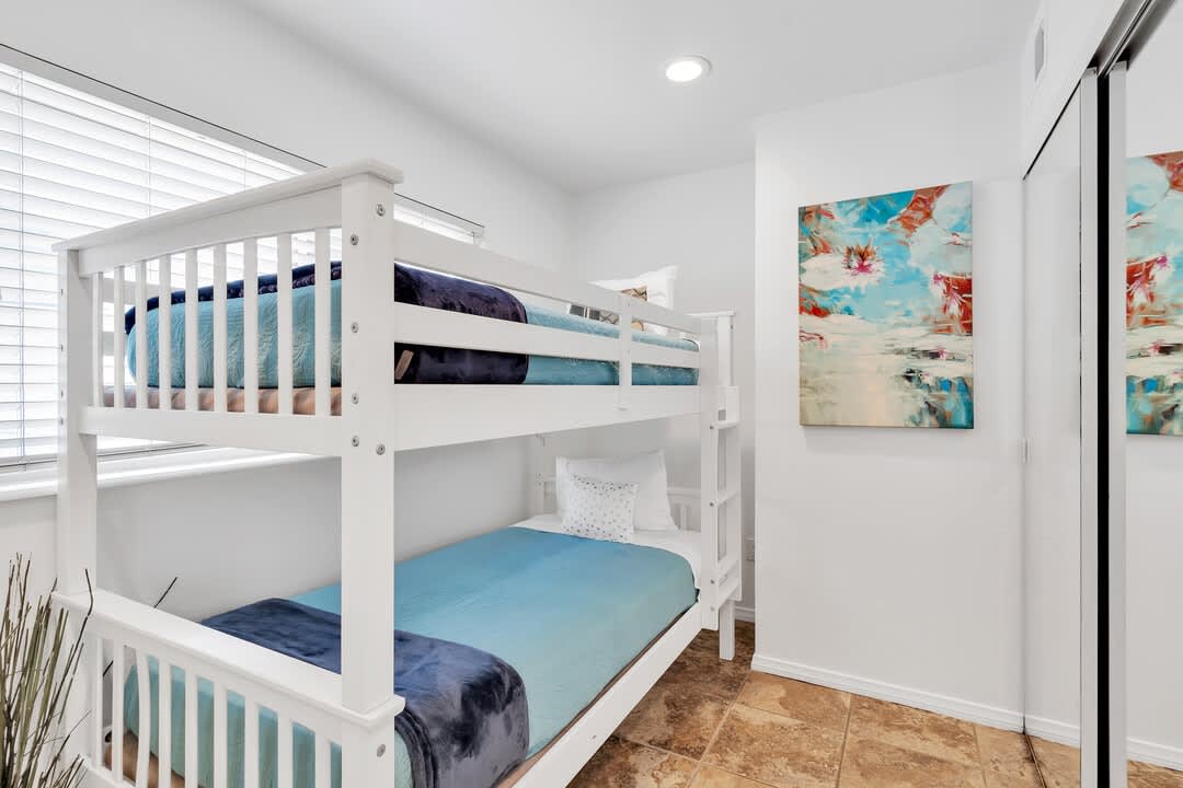This 3bd/3ba house will comfortably sleep 7 people (max 10). The downstairs floor has one bedroom with a large king size bed, private full bathroom, and can be closed off from the rest of the home if needed. The second floor has the kitchen, dining room, and living room as well as the second bedroom. It has a queen bed, and a bunk bed. The third, and top floor has a larger bedroom with a queen bed, a queen futon bed and a master bathroom with a jacuzzi bathtub.