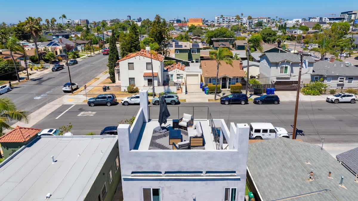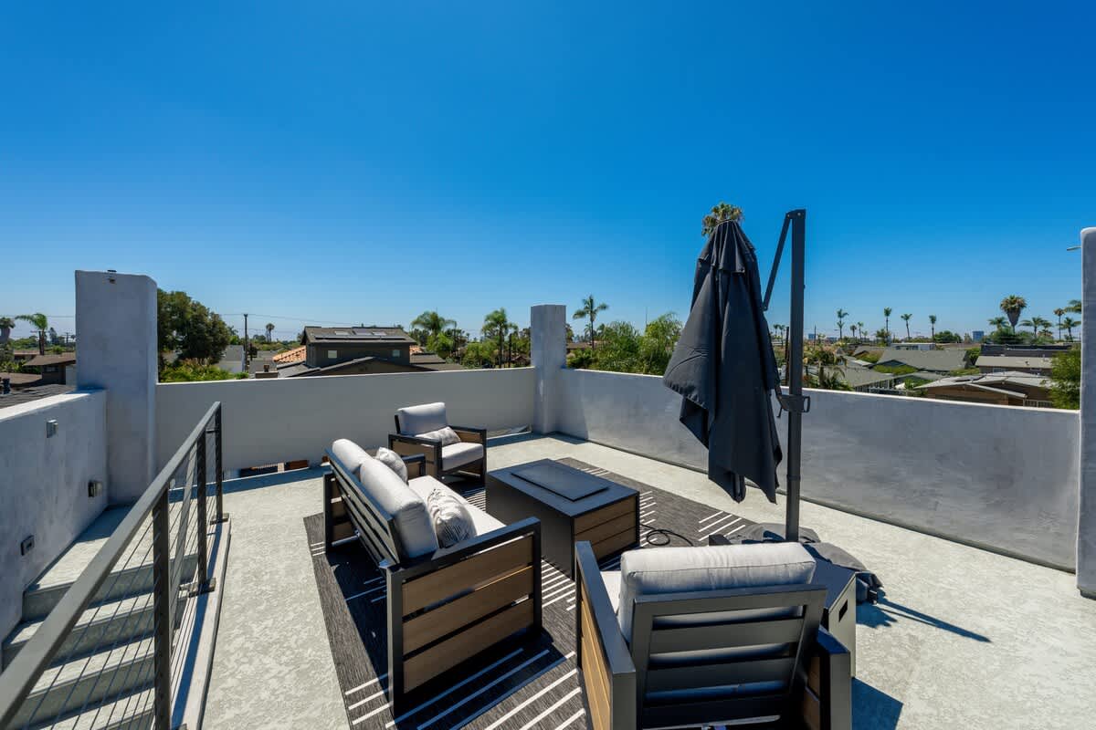 From this level, step out to the private stairs leading to your rooftop deck with sweeping 360-degree views, comfortable seating, and a propane fire pit for evening gatherings. Centrally located in North Park, you’re not far from beaches, top attractions, downtown, the airport, and some of San Diego’s best dining and shopping.