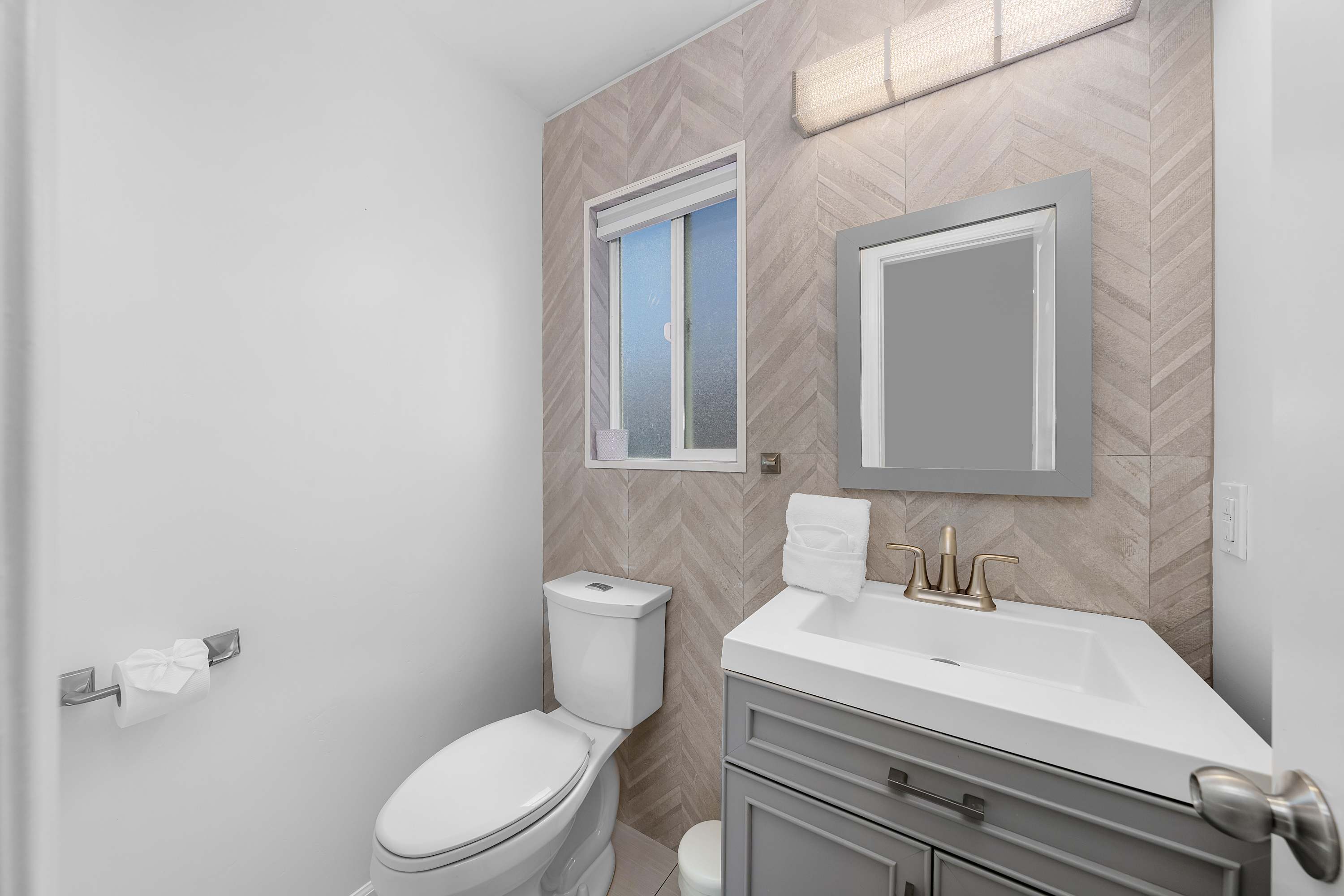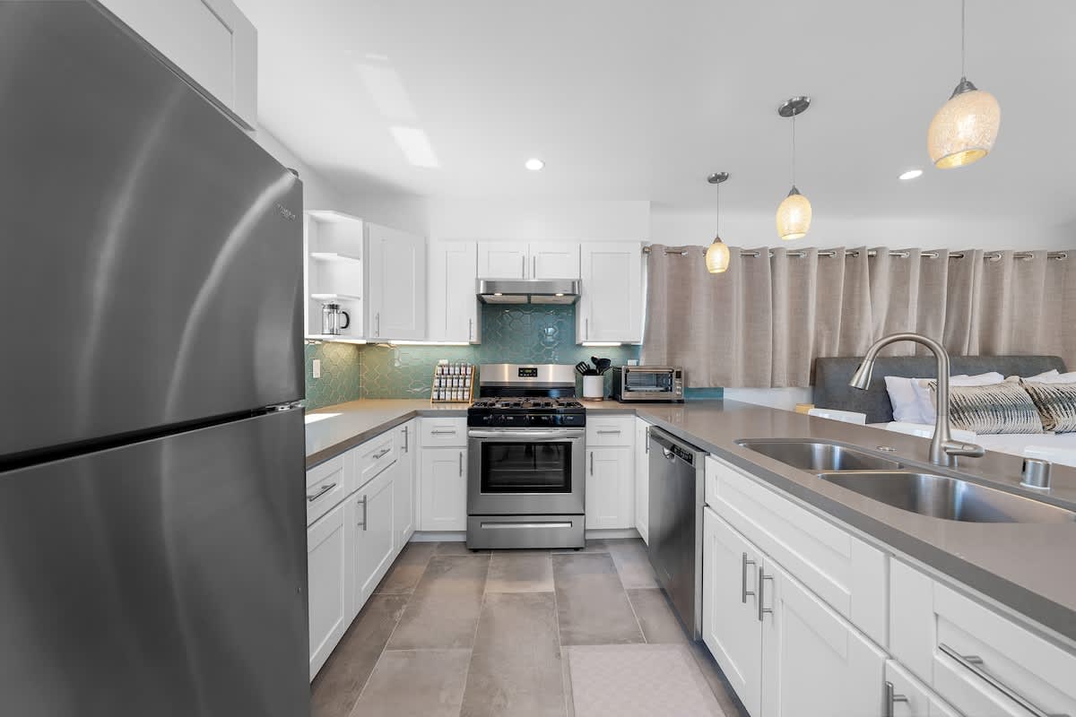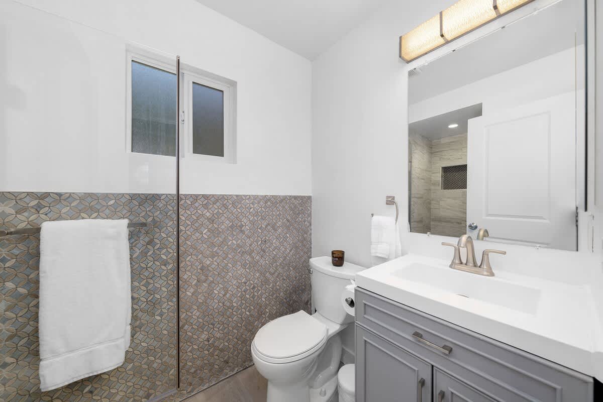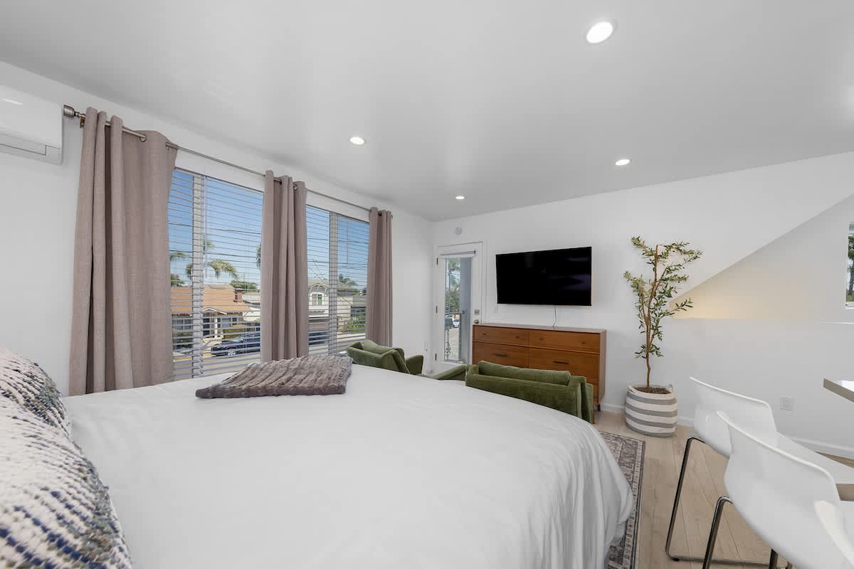 This two-story home offers style, space, and a true San Diego experience. Downstairs features a bunk-bed bedroom and a full size en-suite bathroom with a walk-in shower plus a mini-split for heating and cooling.