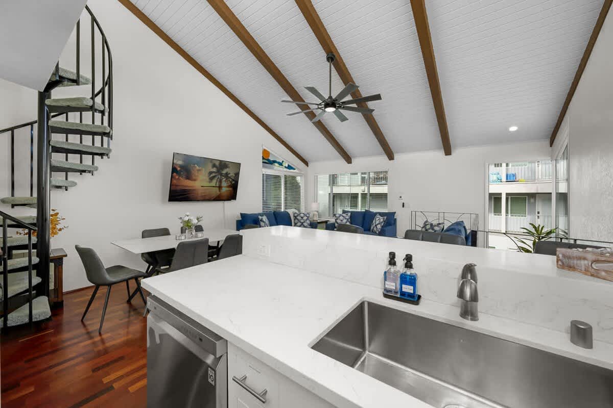 *Fully stocked to cook your own meals ( pots and pans, cooking essentials, silverware, blender, toaster, drip and pod coffee maker. Dishwasher. Coffee and sugar provided. Water filter/ice maker refrigerator.