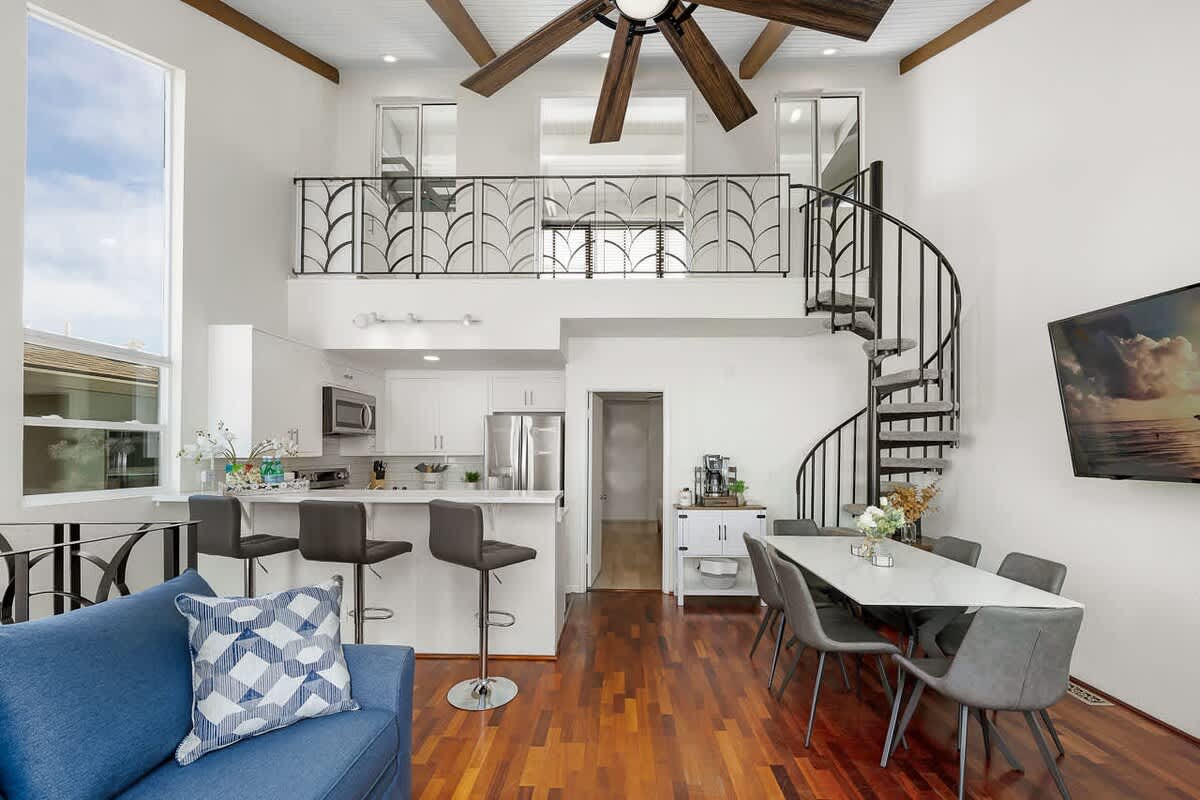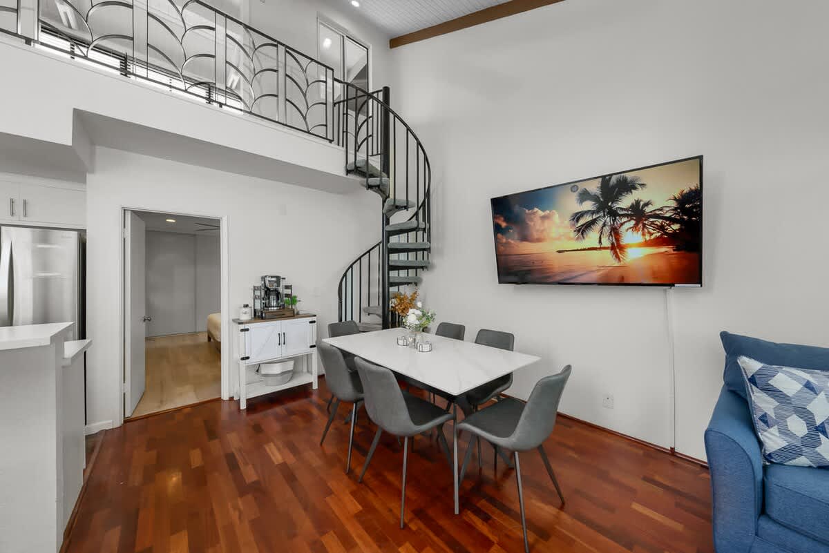 *3rd floor loft features a bunk bed bed twin size, sleeps 2. This room is great for kids. We provide a baby gate for peace of mind. Smart TV. (no air condition in the loft, fan provided)