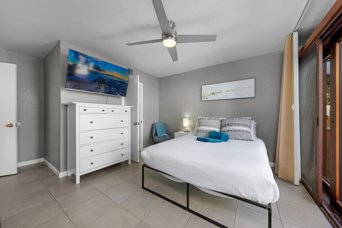 *2nd floor bedroom features a king size bed, and an en-suite bathroom, shower only no tub. Smart TV